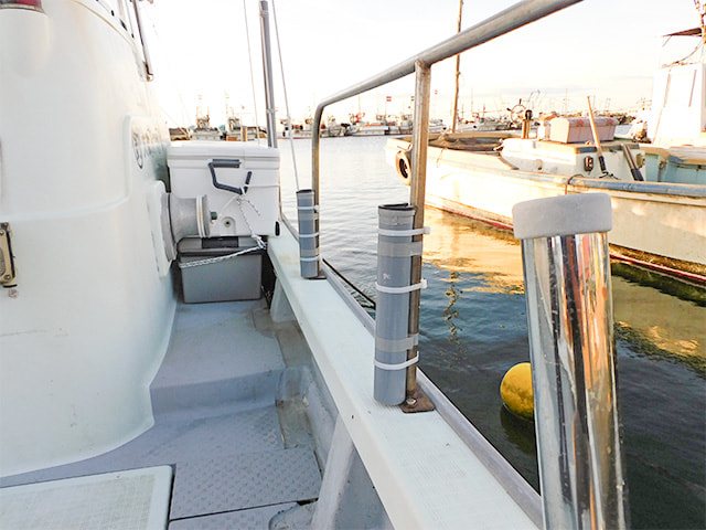 両舷に手すり、竿受け付き